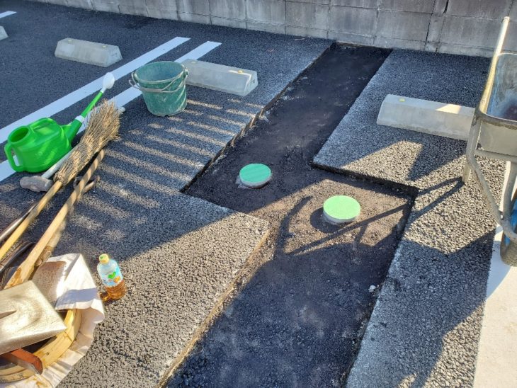完全撤去の下水切り替え工事、駐車場の合材復旧で完了で