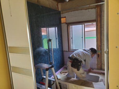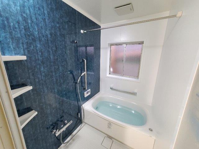 アクセントパネルは深海へのいざない お客様が、LIXILショ-ル-ムでひとめぼれされた、ダークブル-を中心に工事を進めました。 仕事から疲れて帰ってきた身体の大きな息子さんが、ゆっくりと足を伸ばしてつかれるように浴槽は大きくしました。 寒い冬もサーモフロア-なので、タイルの冷たさから解放されました。 |