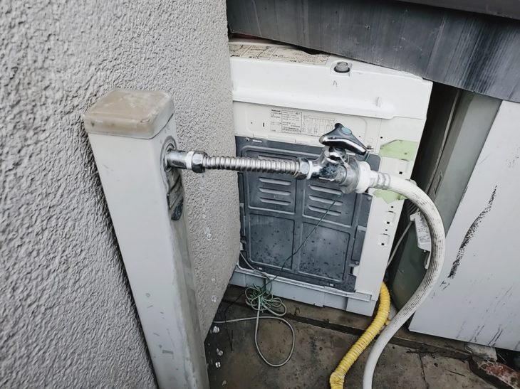 賃借アパ-トです。A号室の住人の方が、洗濯機ホ-スまで水道が届かないので、自力で作業されたみたいです。